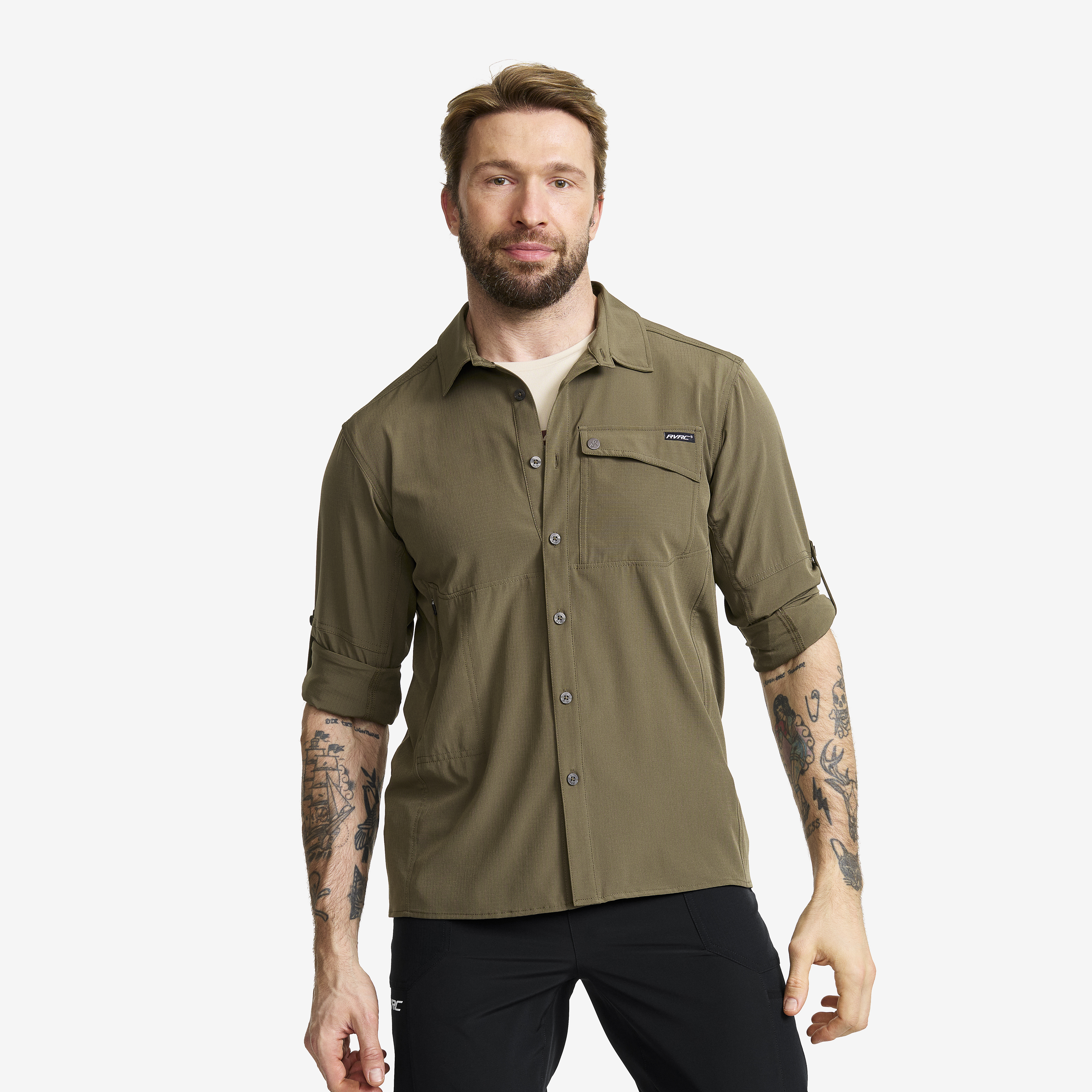 En YKK dragkedjeficka finns på bröstet för säker förvaring av småsaker. Skjortan har en knäppning med knappar och är designad med ett fyrvägsstretchmaterial för optimal komfort. Meshfoder på baksidan och ventilationsöppningar på baksidan och sidorna bidrar till god luftcirkulation.
