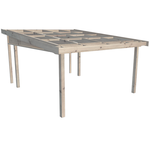Denna färdigkapade limträstomme är perfekt för dig som vill bygga en anslutning mot vägg. Stommen är tillverkad av starkt och formstabilt limträ i gran, vilket gör den lätt att bearbeta och beständig mot aggressiva miljöer.