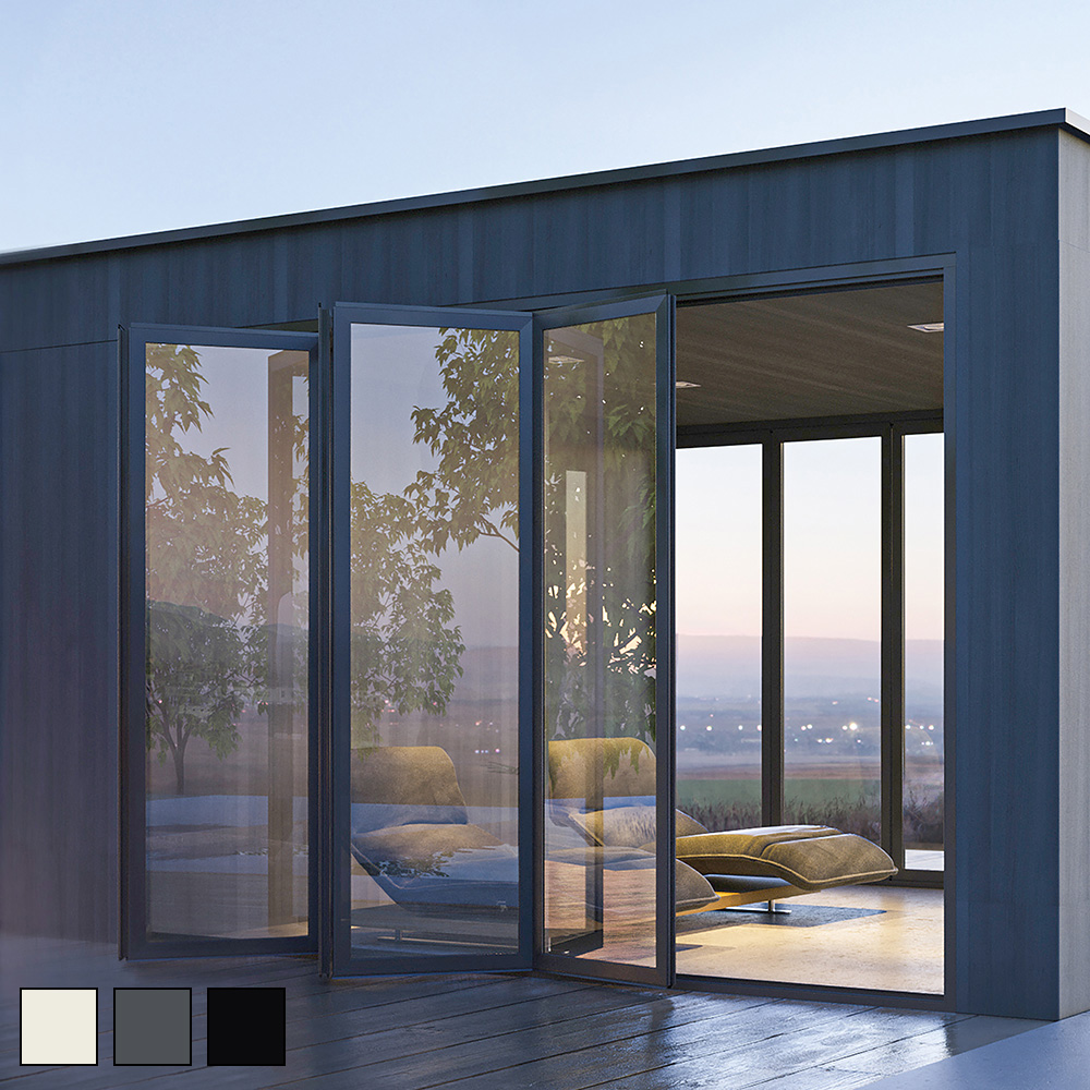 VIKDÖRRAR I ALUMINIUM FÖR SOMMARUTERUMMET SKAPA STORA ÖPPNINGAR OCH YTOR Vikpartier och vikdörrar i glas är perfekta för uterum där du vill öppna upp ordentligt ut mot trädgården. Detta uppnår du med stora glasfronter som kan öppnas upp till nästan 100%. Dessa vikdörrar passar dig som vill njuta av ditt uterum under de härliga sommarmånaderna. Hållbara aluminiumprofiler anpassade för det svenska sommarklimatet Så nära underhållsfritt som du kan komma Maximal öppning med vikdörrar Vikdörrarna är 199,5 cm höga och finns i bredder från 150 cm upp till 410 cm. Beroende på den bredd du väljer får du 2, 3 eller 4 luckor. Välj mellan kulörerna vit, mattsvart och antracitgrå. Du kan välja om du vill öppna dina vikdörrar från vänster till höger, eller tvärtom. Tänk dig att du står i ditt uterum och tittar på partierna inifrån för att göra ditt val. Vikdörrarna är utåtgående vilket ger dig mer plats inne uterummet och du kan möblera som du vill med gardiner, krukor och möbler. Partierna löper
