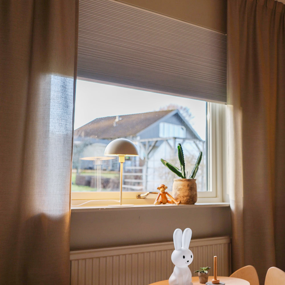 Denna mörkläggande plisségardin ger dig full kontroll över ljusinsläppet och insynen i ditt hem. Den dubbla väven bidrar till ett behagligt inomhusklimat genom att hålla värmen ute på sommaren och minska värmeförlusten på vintern. Gardinen manövreras enkelt med snördrift och kan kompletteras med en skena för extra stabilitet och minskat ljusinsläpp.