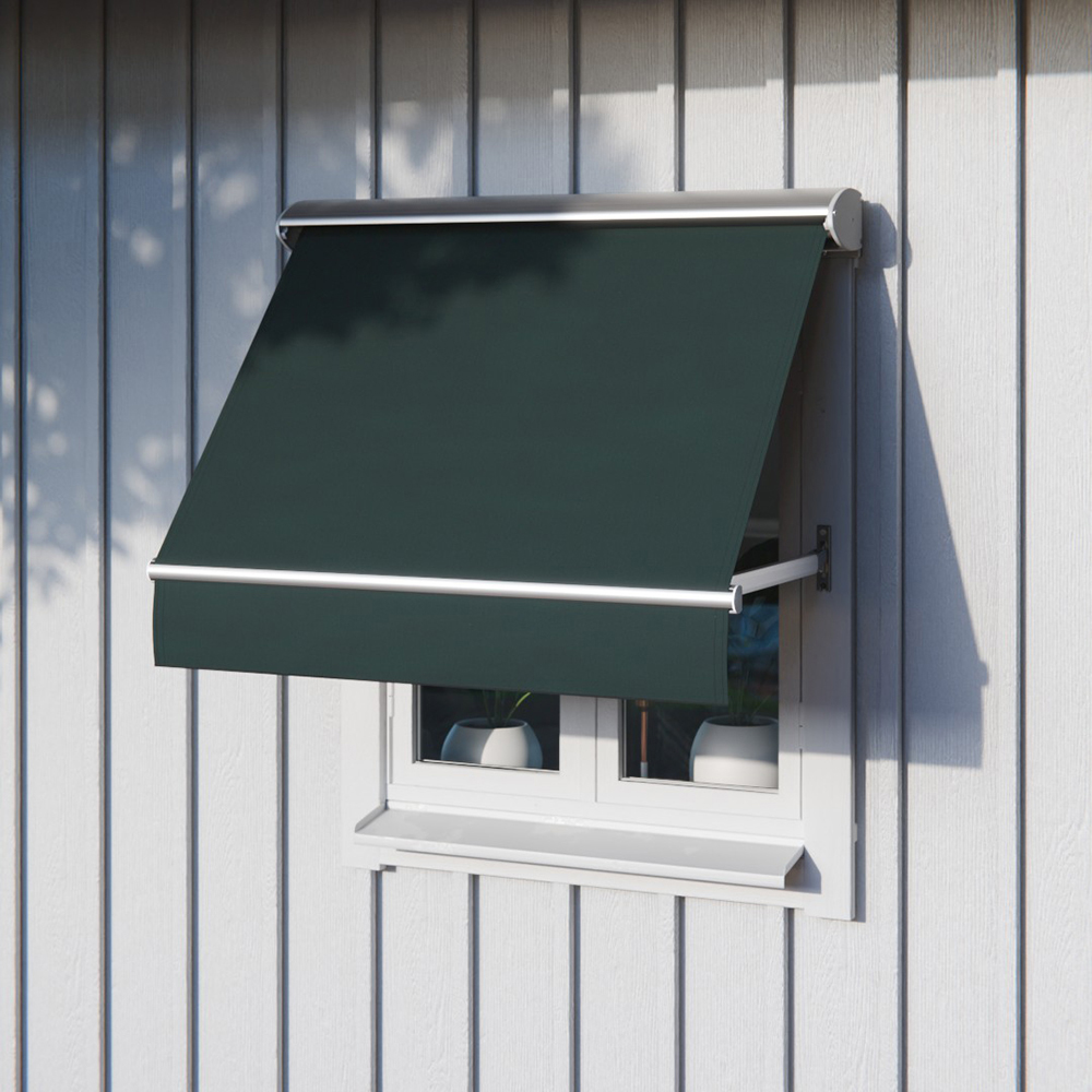Denna svensktillverkade fönstermarkis stänger ute solens strålar och skapar en behaglig skugga inomhus. Markisen är tillverkad av slitstark akrylväv som är vatten- och smutsavvisande. Med en fönstermarkis kan du njuta av svalare temperaturer i ditt hem under varma sommardagar.