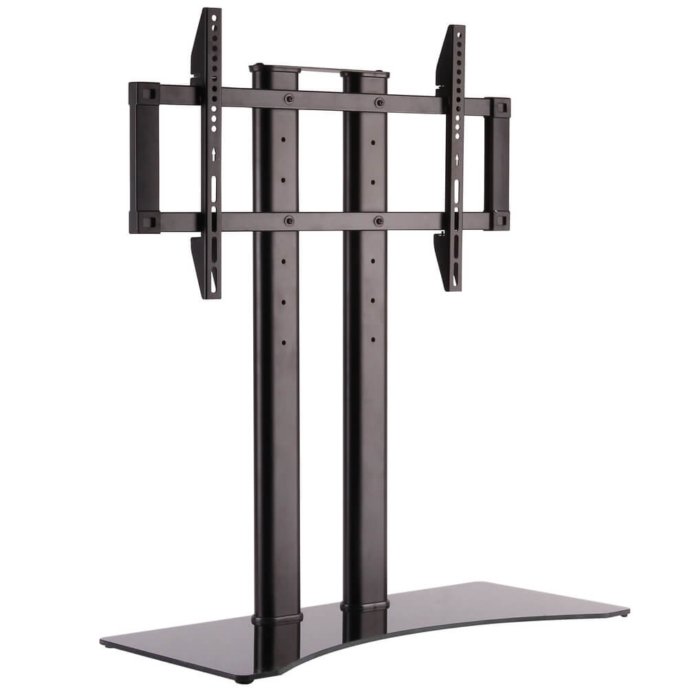 Detta justerbara bordsstativ är designat för att passa TV-apparater mellan 37 och 65 tum. Med en robust stålkonstruktion och en elegant fot av svart glas, erbjuder det en stabil och snygg lösning för din TV. Stativet är enkelt att installera och justera, vilket gör det möjligt att anpassa TV:ns höjd efter behov.