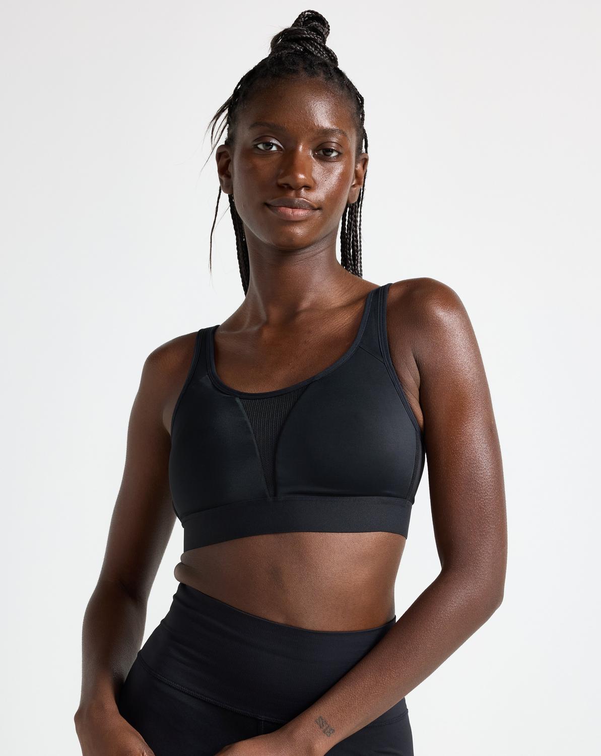 Mjuk och skön ovadderad sport-bh med maximalt stöd, lämplig för högintensiv träning. De vadderade panelerna framtill på bh-banden ger bästa komfort.