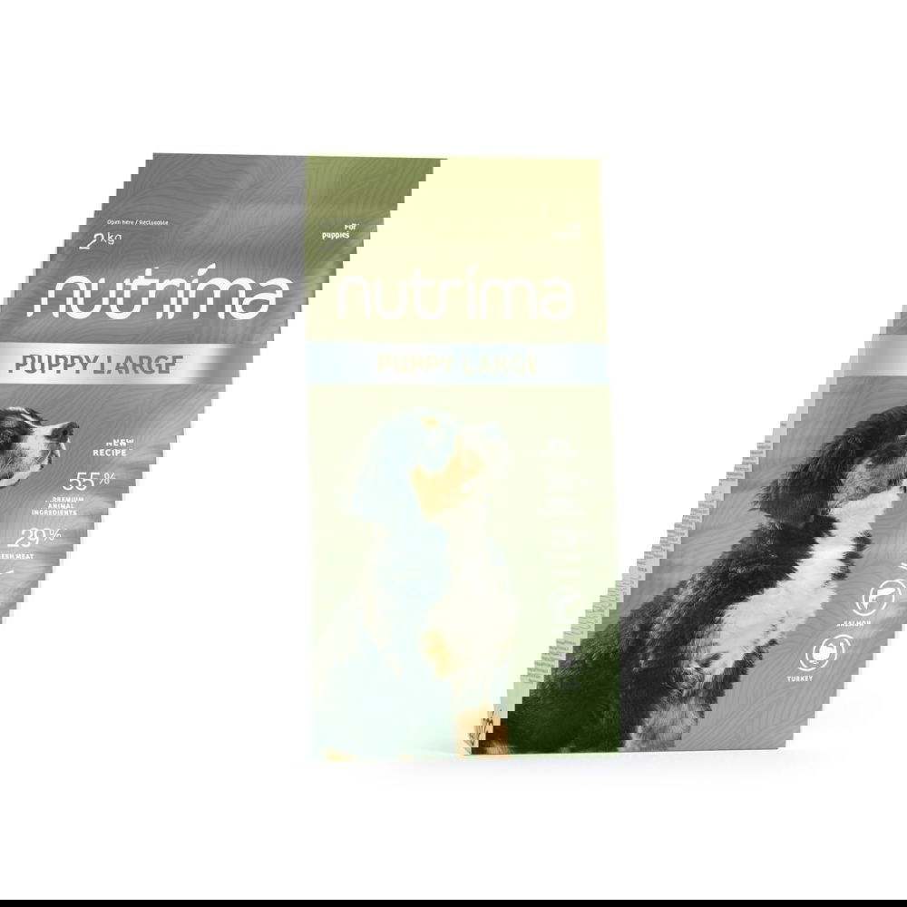 Nutrima Puppy Large Breed är ett torrfoder speciellt framtaget för valpar av storvuxna raser. Fodret innehåller lax, kalkon och kyckling för hög smältbarhet och är berikat med fibrer och hälsofrämjande ingredienser som glucosamin och antioxidanter.
