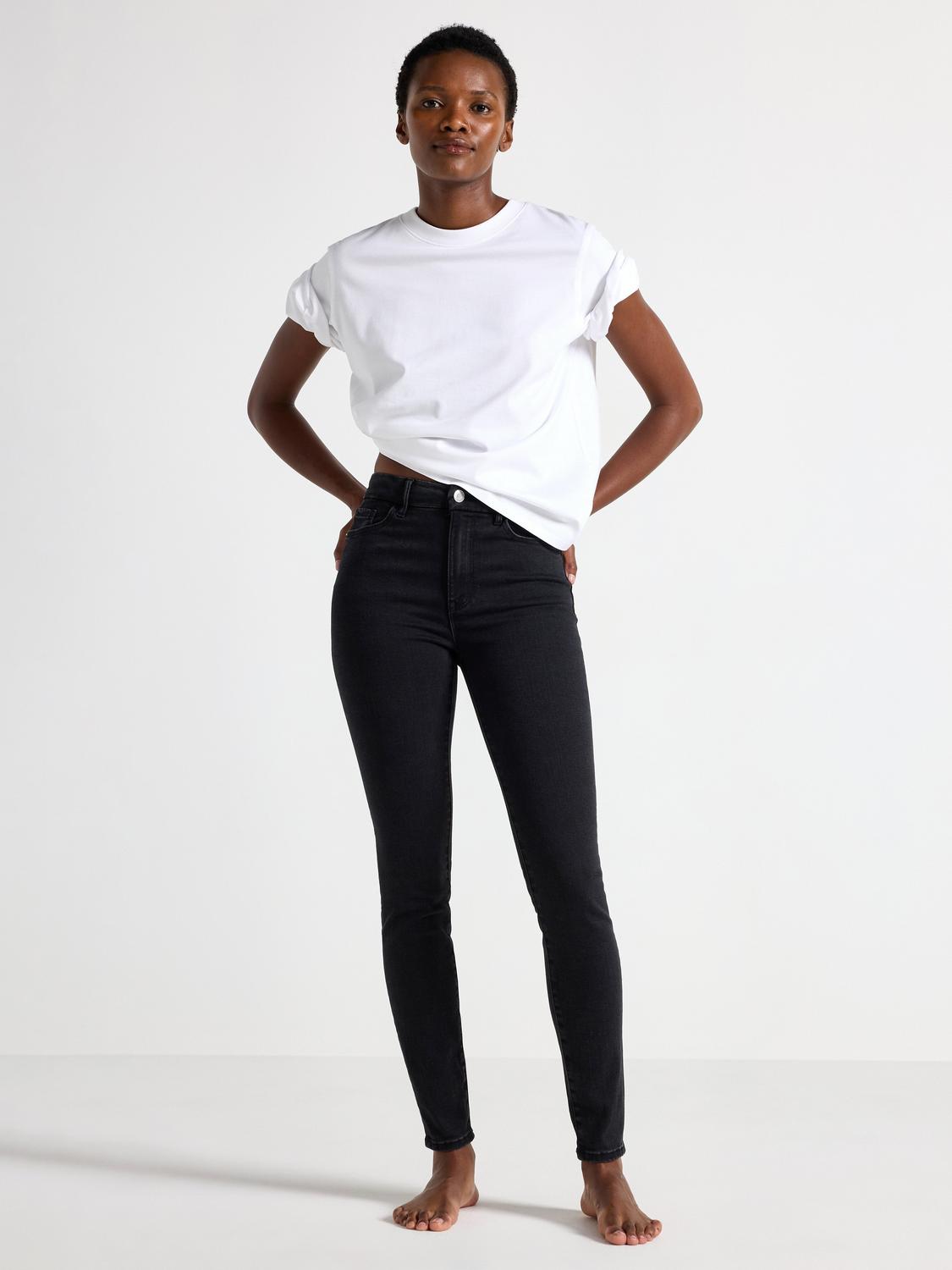Dessa jeans har en smal passform och hög midja, vilket ger en smickrande silhuett. Superstretch-materialet gör dem bekväma att bära samtidigt som de behåller formen.