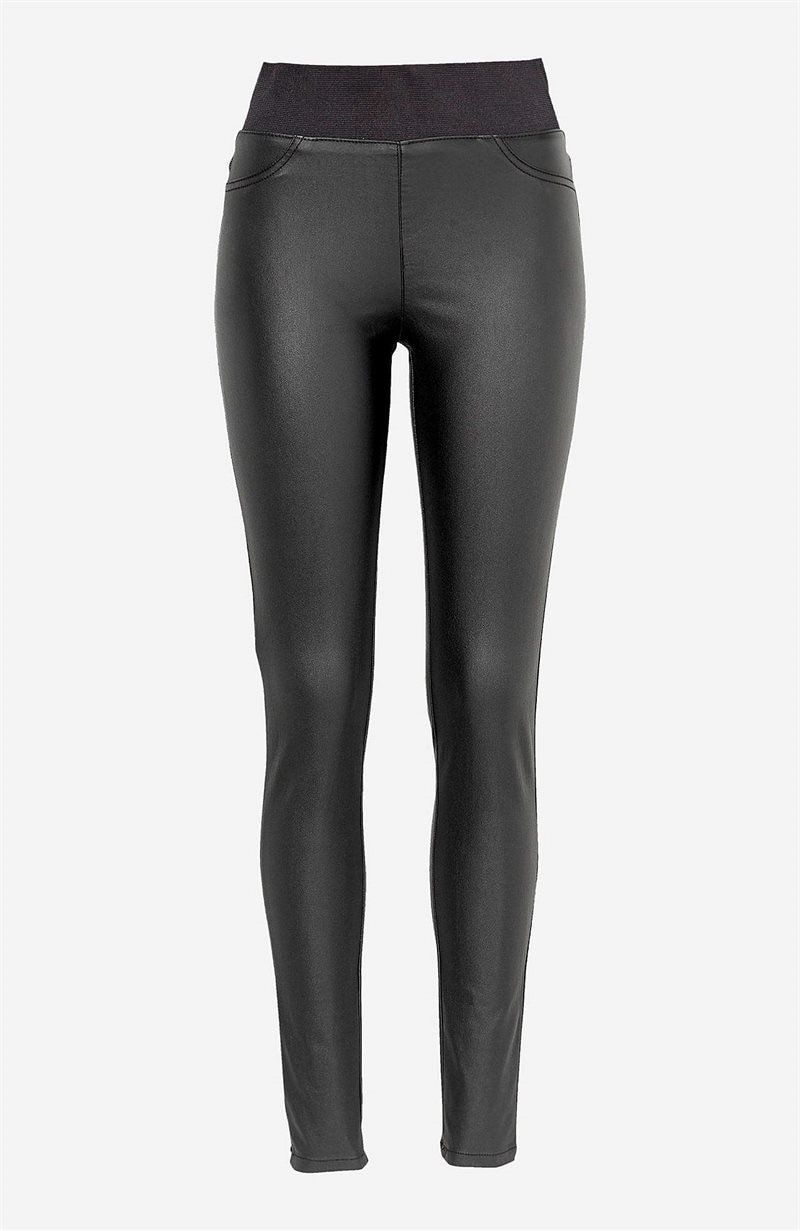 Shantal byxor från Freequent med en tight passform och extra stretch. Byxorna har en hög midja med en bred resår för extra komfort. Fuskfickor fram och riktiga fickor bak. Benen är hellånga.