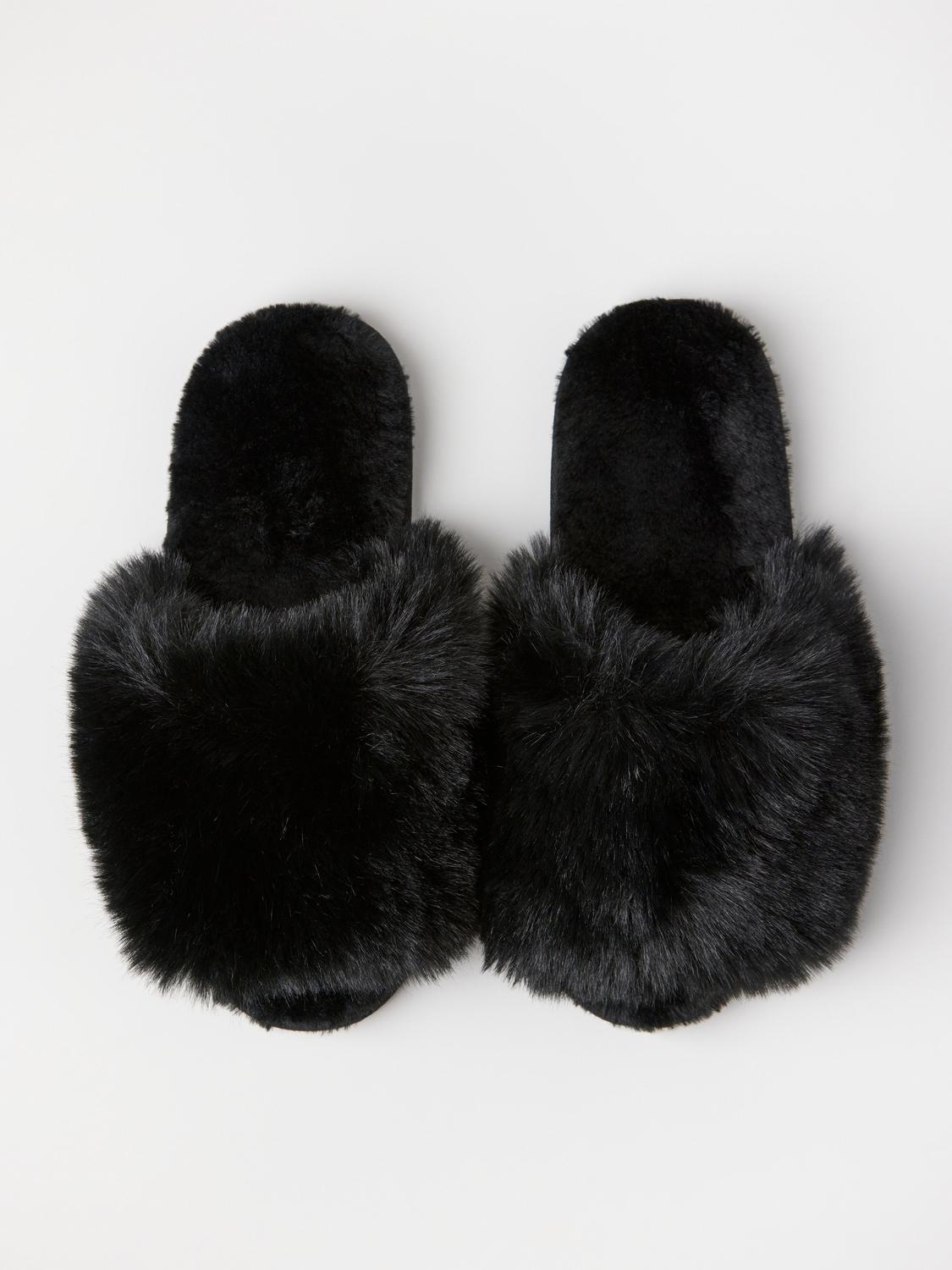 Dessa ballerina-tofflor är tillverkade i mjuk fuskpäls, både på utsidan och insidan, vilket ger en varm och skön känsla. Den klassiska designen kombineras med en flexibel sula, vilket gör dem perfekta för avkoppling hemma.