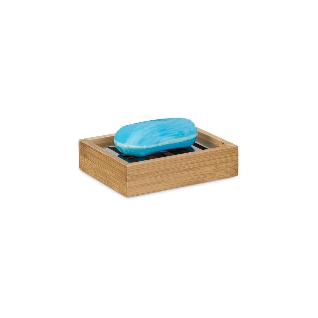 Denna tvålkopp i bambu ger ditt badrum en naturlig och stilren touch. Med sitt droppgaller i rostfritt stål håller den tvålen torr och fräsch. En praktisk och snygg detalj för badrummet.