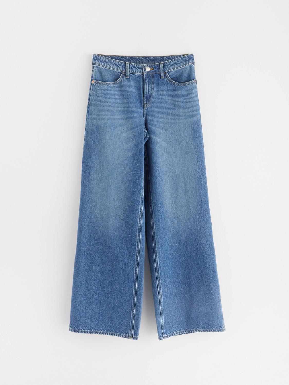 Dessa jeans är tillverkade i bomullsdenim och har en hög midja samt extra vida ben för en trendig silhuett. De är designade för att vara bekväma och stilfulla.