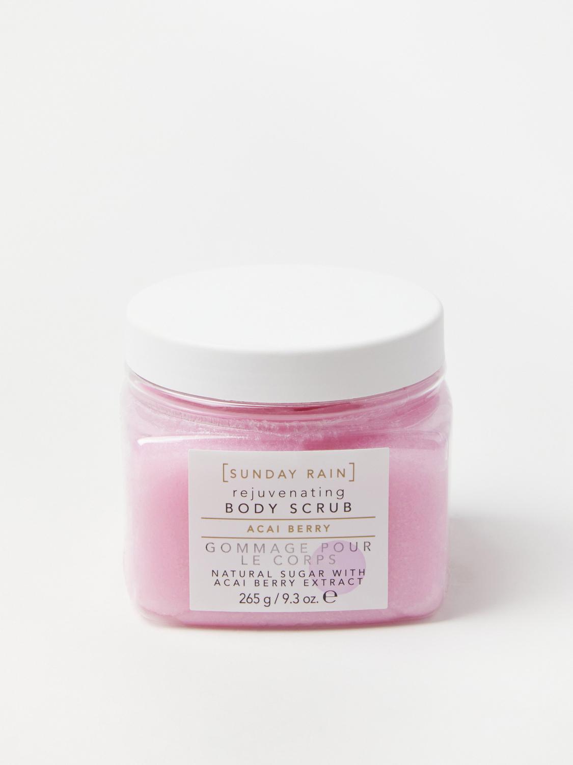 Sunday Rain Body Scrub Acai Berry är en exfolierande kroppsskrubb som rengör huden med hjälp av naturligt socker. Den innehåller även sheasmör som återfuktar och vattenmelon som ger lyster.