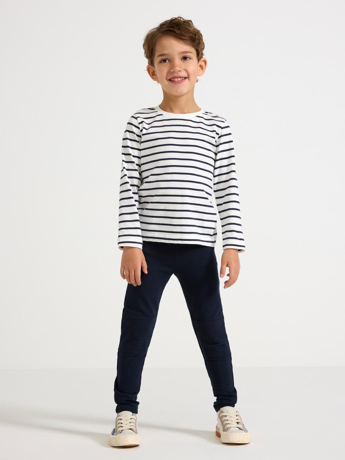 Dessa leggings är tillverkade i mjuk ekologisk bomullstrikå och har en borstad insida för extra komfort. De är designade med förstärkta knän för att tåla lek och bus. Perfekta för aktiva barn.