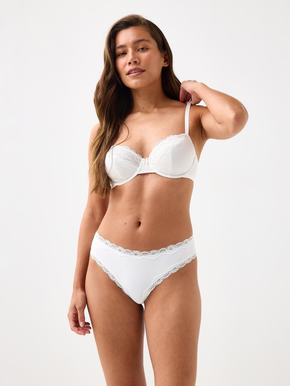 En mjuk och bekväm bralette i vacker spetsdesign. Den har smala axelband och lätt vadderade kupor för en fin form och bra stöd. Perfekt för en avslappnad look eller under en transparent blus.