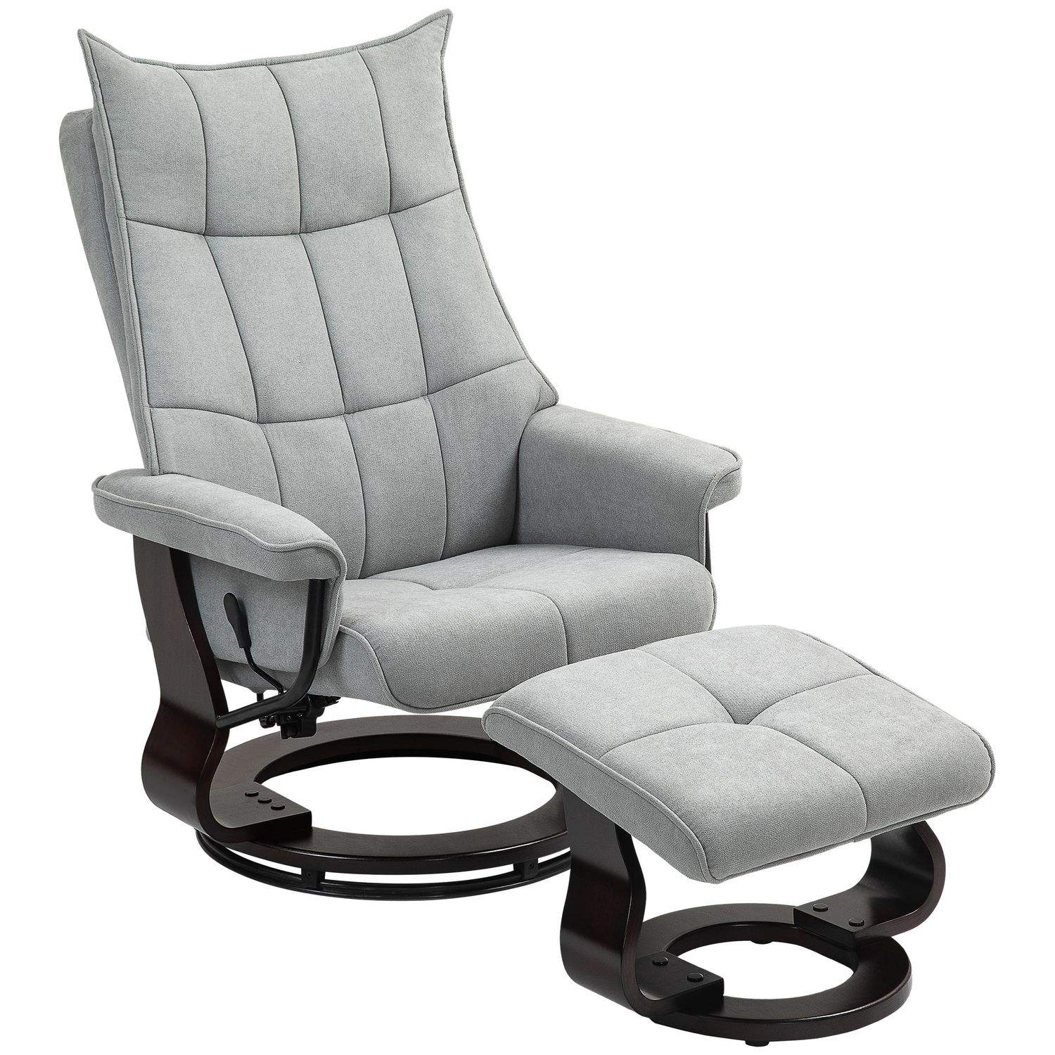 Denna massagestol med tillhörande pall erbjuder en skön stunds avkoppling med hjälp av vibrationsmassage. Med flera massagepunkter och justerbara funktioner kan du anpassa massagen efter dina behov. Stolen är klädd i konstläder och har en vridbar bas för extra komfort.