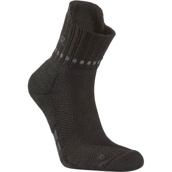 Detta strumpset innehåller två par strumpor, en tunn innerstrumpa och en vadderad ytterstrumpa, perfekta för vandring och kalla dagar. Merinoullen håller fötterna torra och varma, medan förstärkningar ger extra hållbarhet.