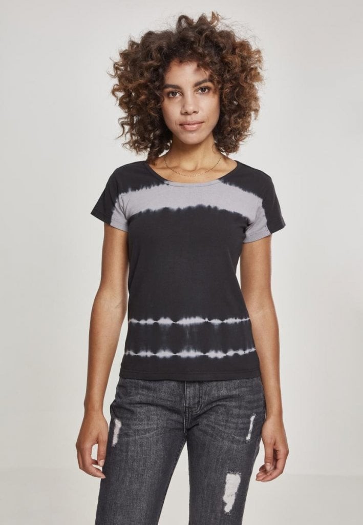 En trendig t-shirt för damer med ett unikt batikmönster i svart och ljusgrått. T-shirten har en bekväm passform och är tillverkad i ett mjukt bomullsmaterial med stretch. Perfekt för en avslappnad och stilfull look.