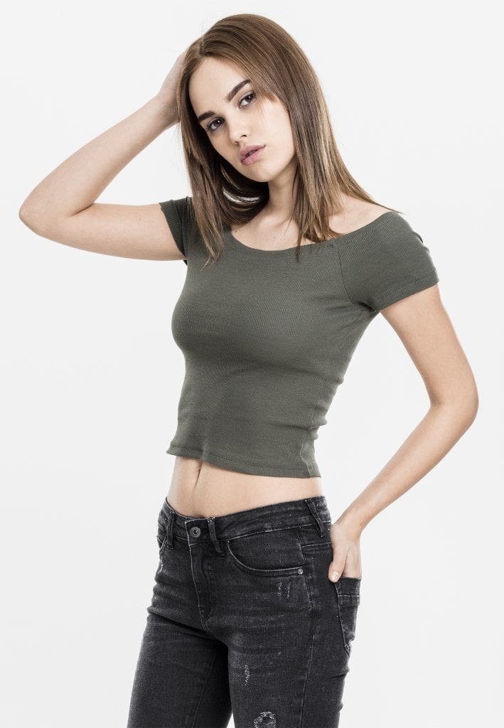 Denna ribbade bomullstopp för dam har en smickrande design med bara axlar och en mångsidig halsringning. Toppen är tillverkad i ett mjukt och stretchigt material som ger en bekväm passform. Finns i flera trendiga färger.