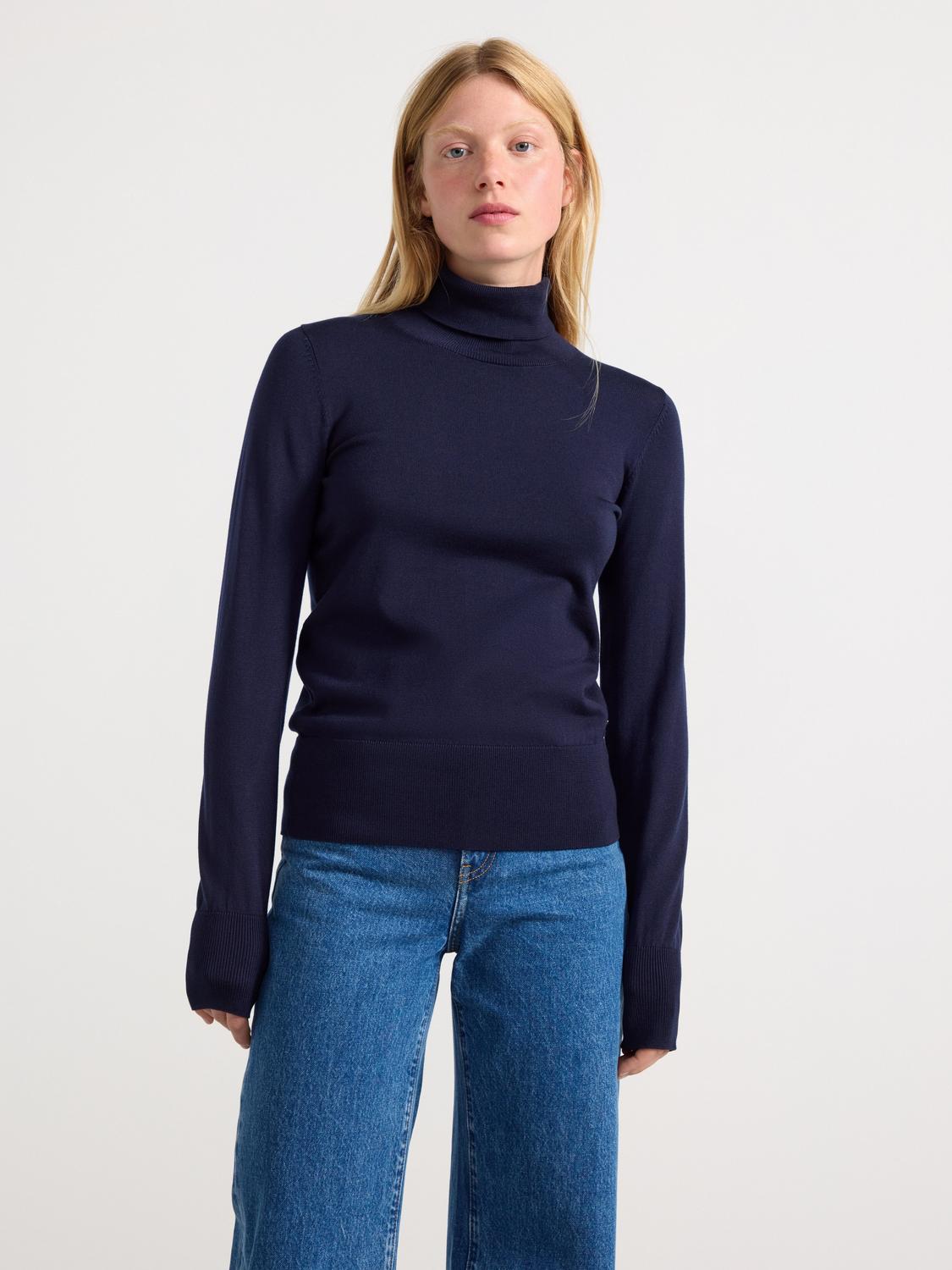Denna finstickade polotröja är ett bekvämt och stilrent plagg för kyligare dagar. Med sin mjuka kvalitet och långa ärmar är den perfekt för både vardag och mer avslappnade tillfällen.