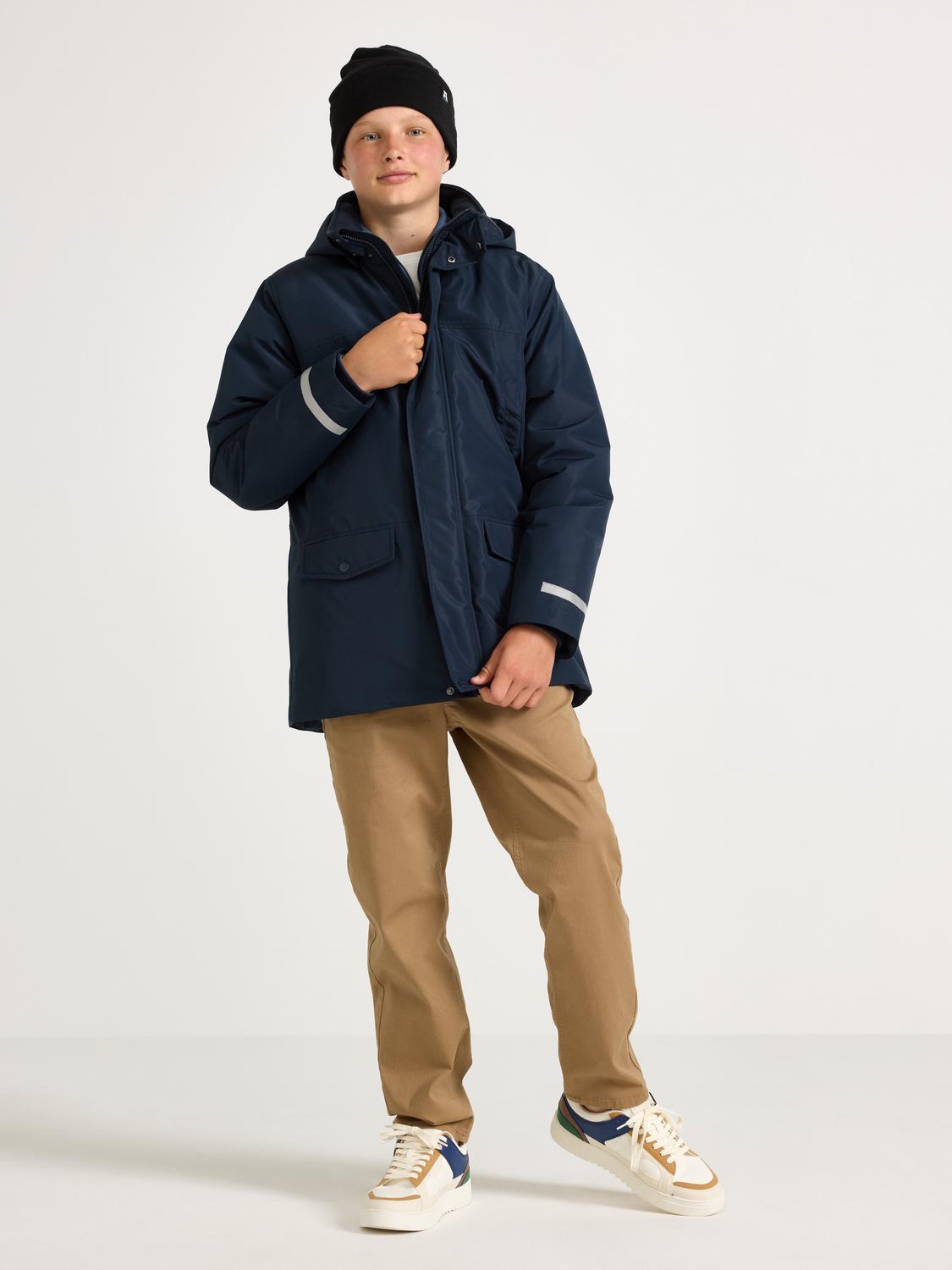 Denna vadderade parkas är perfekt för barn som älskar att vara ute i alla väder. Jackan är både vind- och vattentät och har en hög fleecefodrad krage som håller värmen. Den avtagbara huvan gör jackan flexibel för olika väderförhållanden.